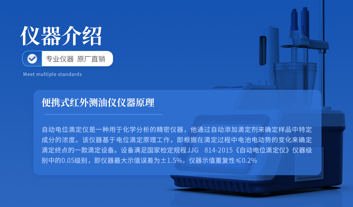 | 自動電位滴定儀是一種用于化學分析的精密儀器,他通過自動添加滴定劑來確定樣品中特定成分的濃度。該儀器基于電位滴定原理工作,即根據(jù)在滴定過程中電池電動勢的變化來確定滴定終點的一款滴定設備。設備滿足國家檢定規(guī)程JJG 814-2015《自動電位滴定儀》儀器級別中的0.05級別,即儀器**示值誤差為±1.5%,儀器示值重復性≤0.2% |